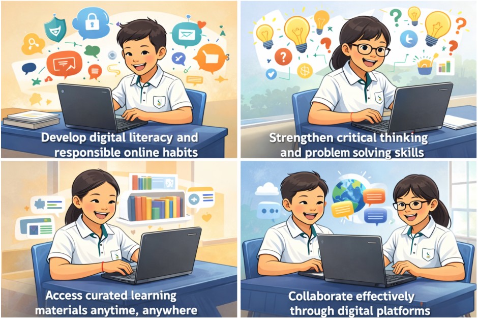 An MOE Device Management Application has been installed on all students’ PLDs. The DMA provides a safer digital environment for learning and supports both the school and parents in guiding students’ device use.